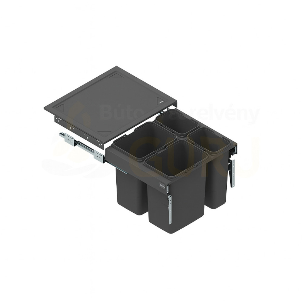A 425 mm magas kivitel nagyobb tárolókapacitást biztosít, és tökéletes választás olyan konyhákba, ahol a 60 cm széles szekrényben magasabb, teljesértékű kosárrendszer fér el. A grafitszínű tartályok modern, letisztult megjelenést kölcsönöznek, miközben könnyen tisztíthatók és ellenállnak a szagoknak.