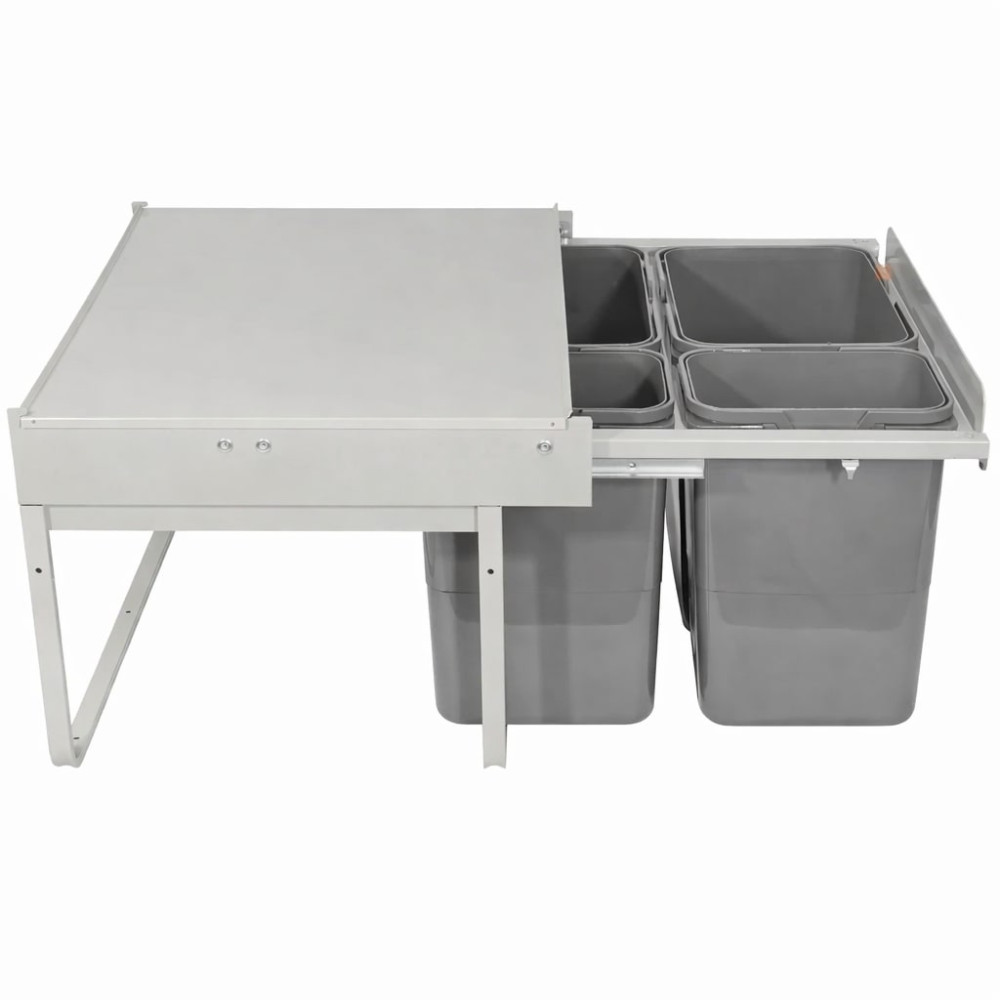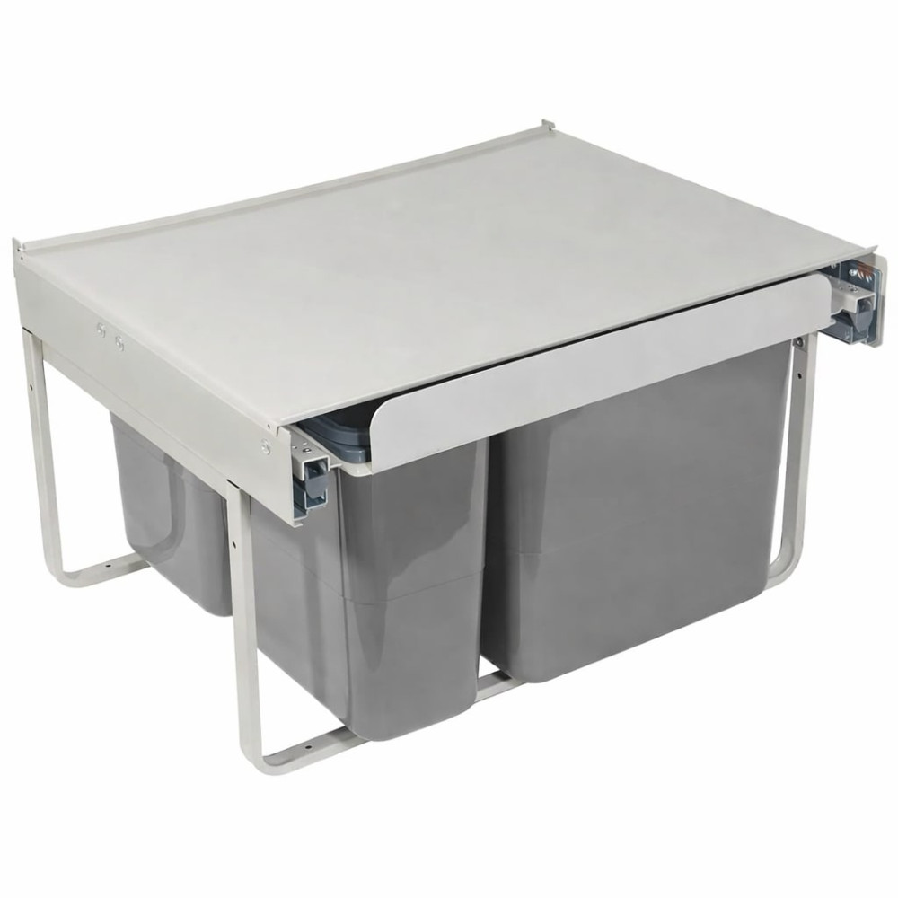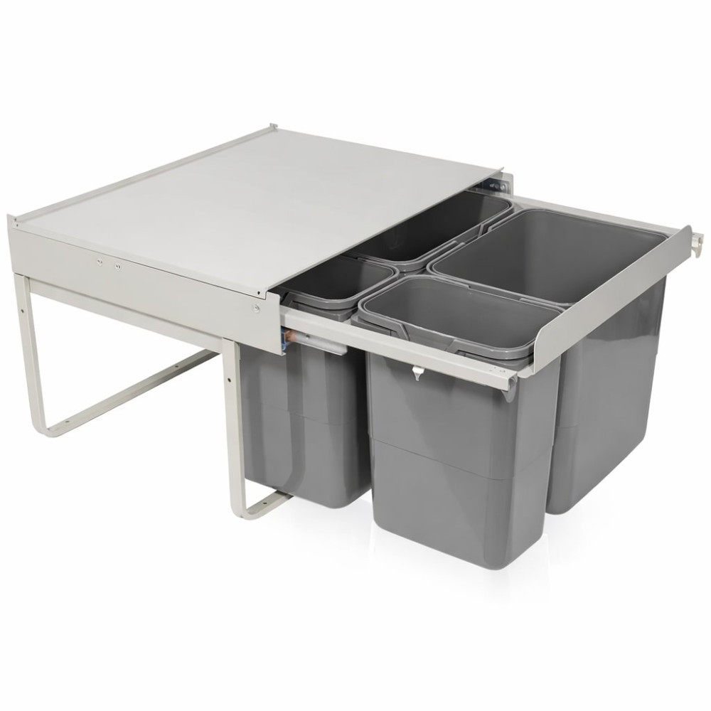 A szemetes 60 cm széles alsó szekrénybe tervezett, teljesen kihúzható kivitelű rendszer, amely kényelmes hozzáférést biztosít a tárolókhoz. A masszív acél váz stabil működést garantál, míg a pontosan vezetett sínek halk és egyenletes mozgást tesznek lehetővé a mindennapi használat során.